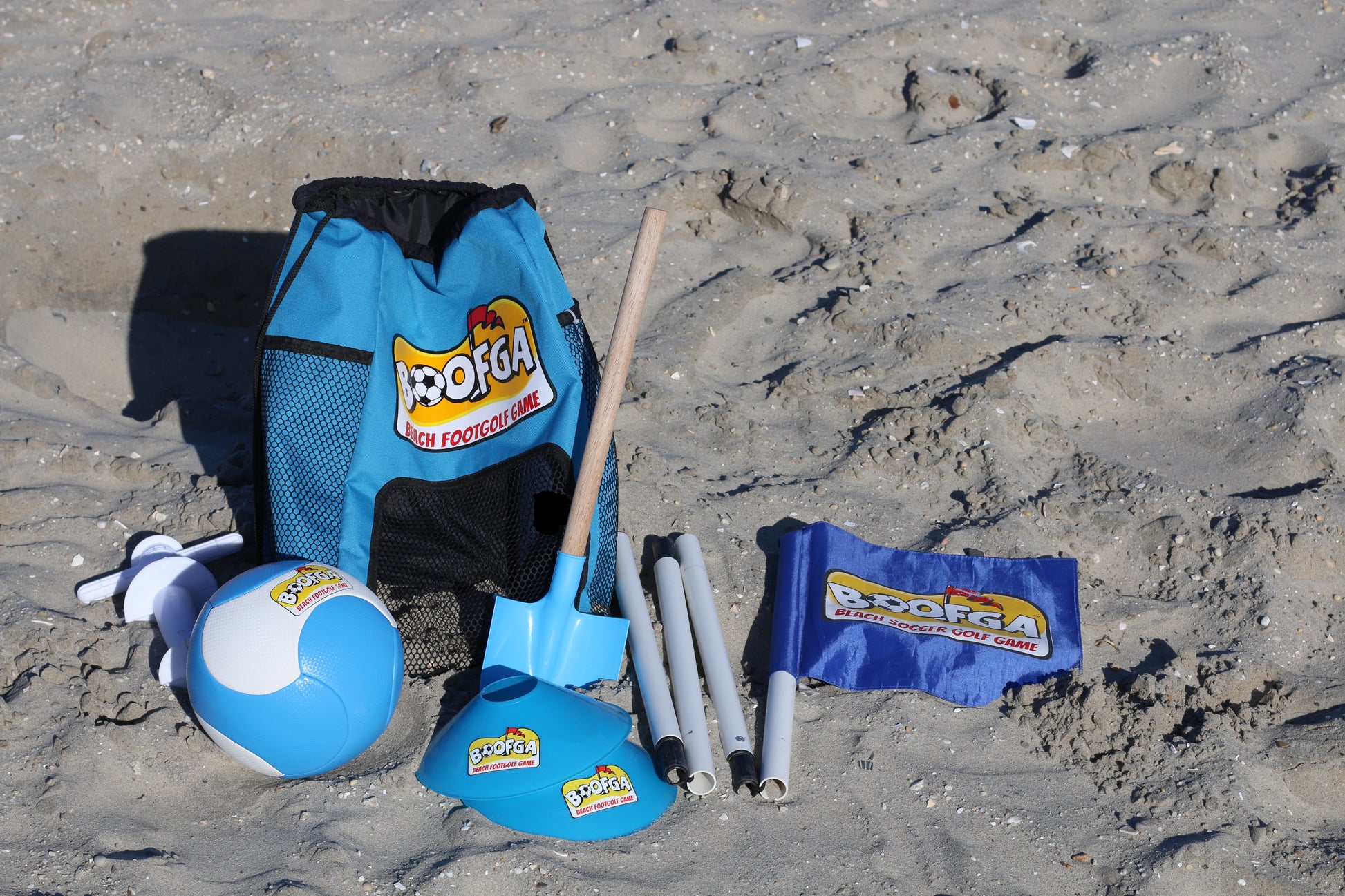 BOOFGA™ is a unique game that combines the best of beach soccer and golf. This game provides a fun and active way to enjoy the sun and sand, while touching up your soccer skills. With BOOFGA™, you can experience the excitement and skill of soccer while enjoying the precision and challenge of golf.