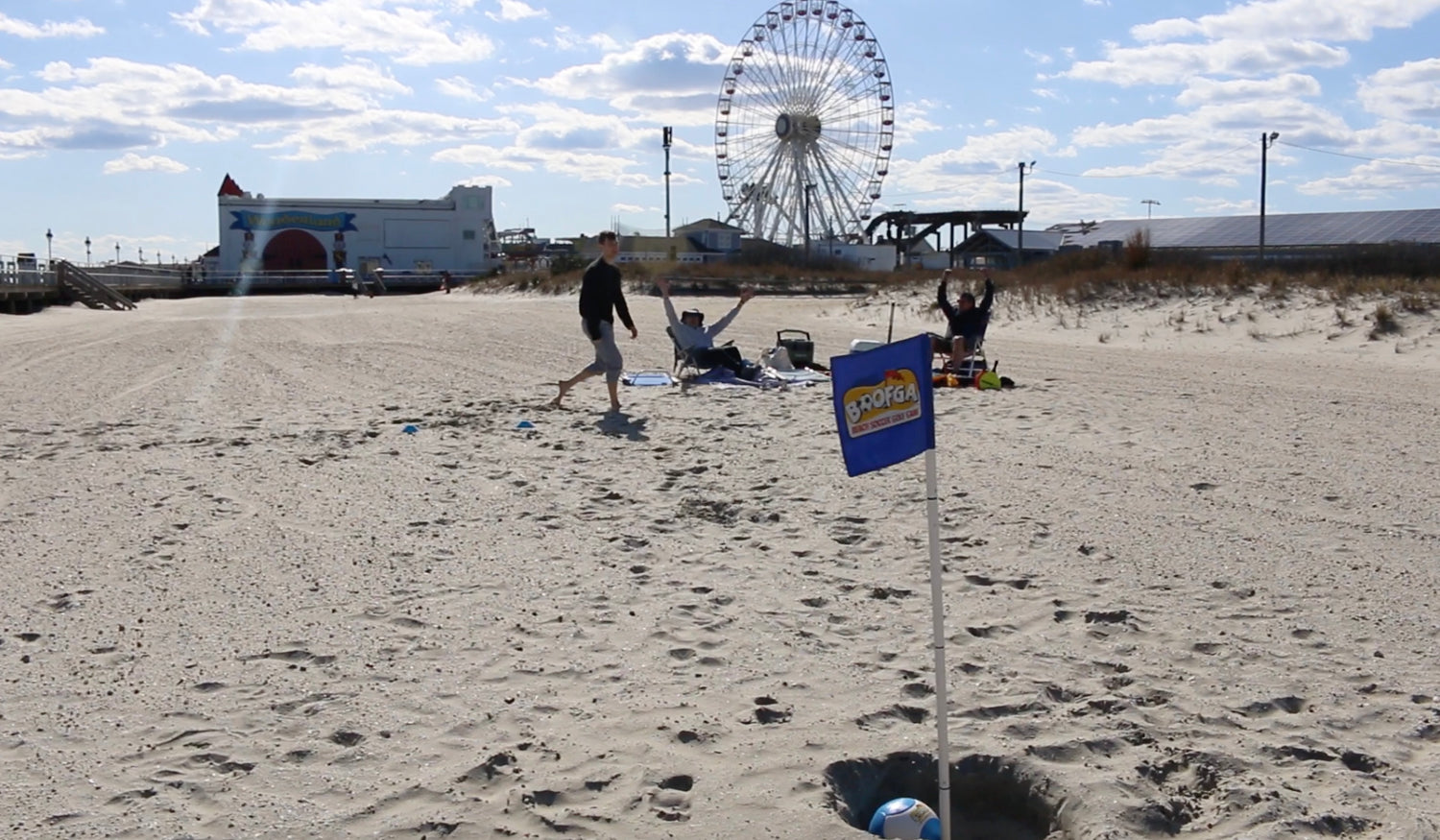 BOOFGA™ combines the fun and thrills of soccer and golf into a family-friendly beach game. The goal is to kick the soccer ball in the hole in as few kicks as possible.